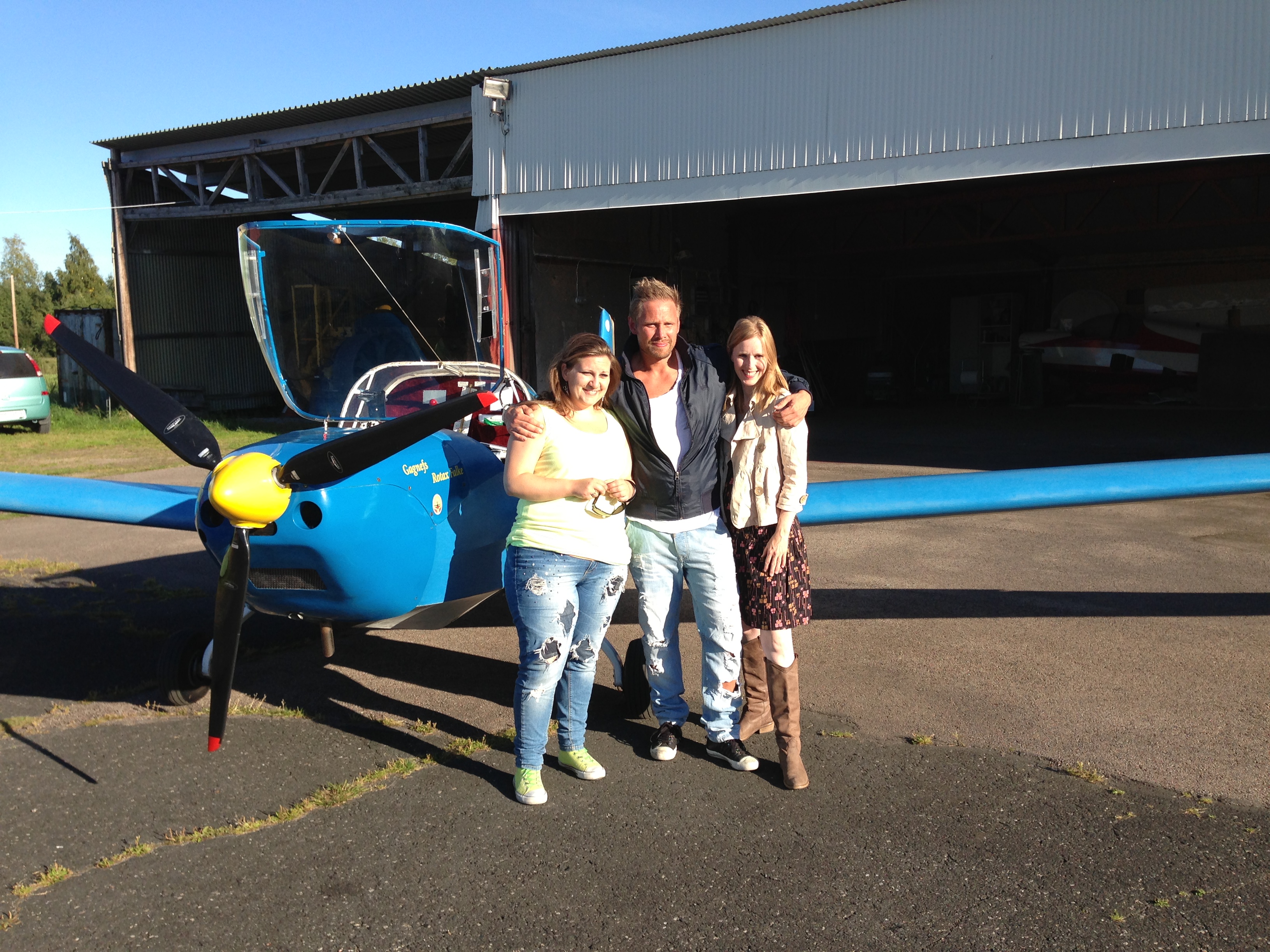 Jag, Maria och Linda under en av inspelningsdagarna på Gagnefs Flygklubb.