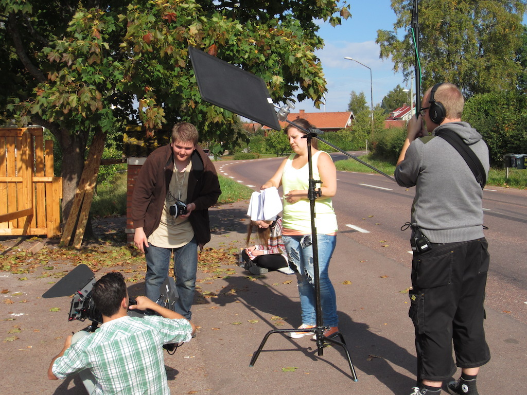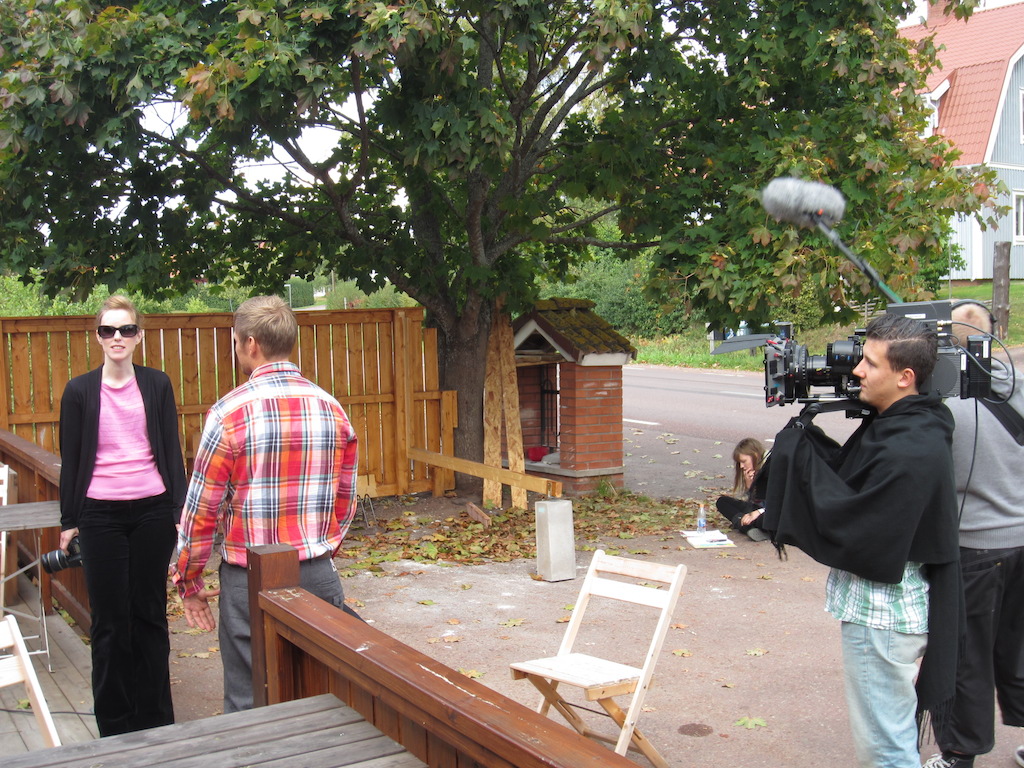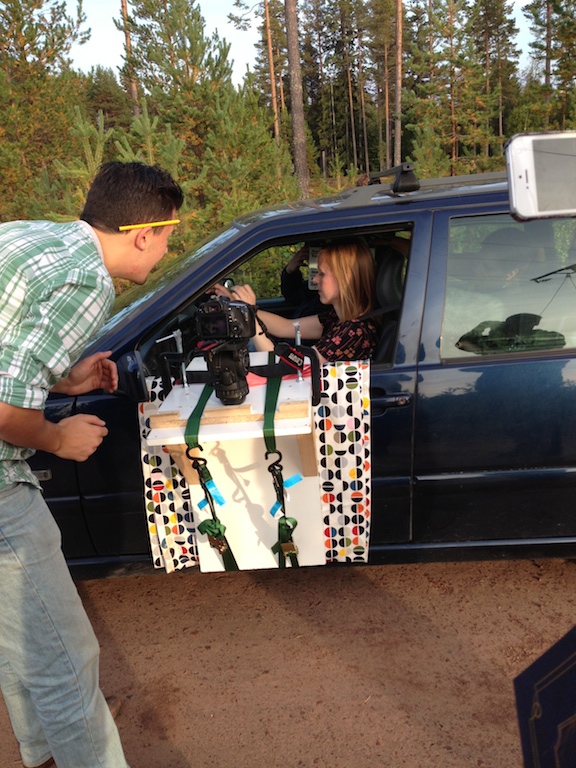 När vi satt dessa tagningar var det en riktigt svår scen som vi också var tvungna att sätta denna eftermiddag innan ljuset blev för dåligt. Edvard och Loui skulle åka i en bil och en vän till mig, Kjell-Ove hade byggt en kamerarigg efter Marias instruktioner som skulle sitta utanpå bilen. Jag skulle köra och hålla koll på kamran och samtidigt spela en dialog med Loui. Maria satt i baksätet och gav direktiv och Pontus tog ljud. Det var inte såååå enkelt.