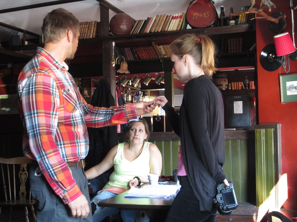 Vi trodde som sagt var att vi hade gjort vår sista inspelningsdag  på Pub 38 men när vi rannsakade oss själva kom vi på att vi missat och filmat en sekvens i filmen när Edvard mer eller mindre flyr från Loui och puben.(Ni får se i filmen)